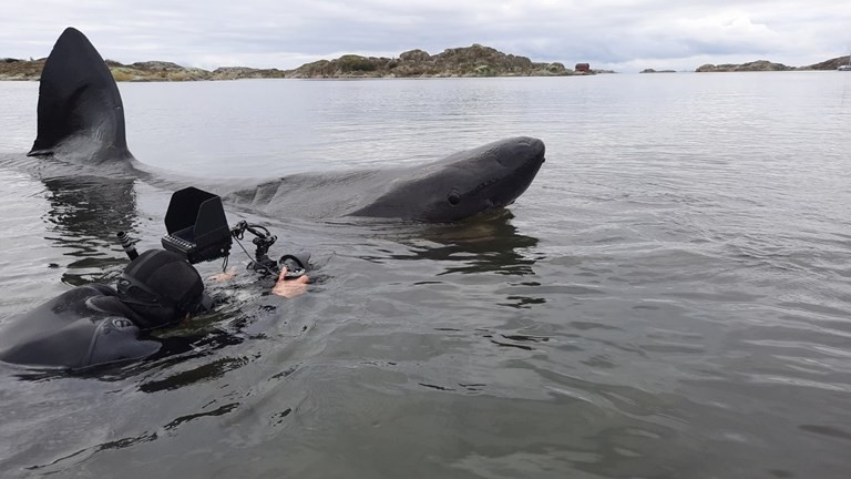 Under helgen förirrade sig en brugd in i en grund vik i Göteborgs skärgård. Efter en omfattande räddningsinsats kunde den grundstötta hajen hjälpas loss och bogseras ut på djupare vatten.