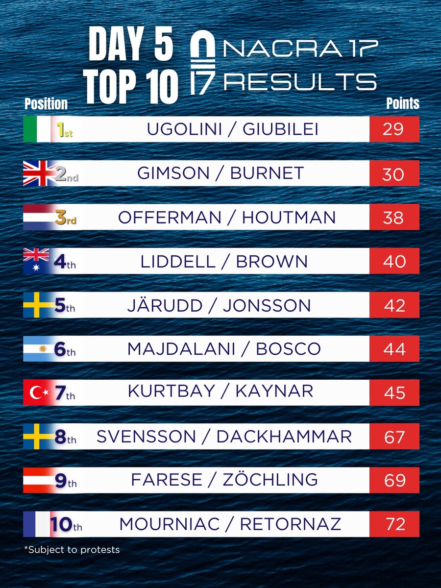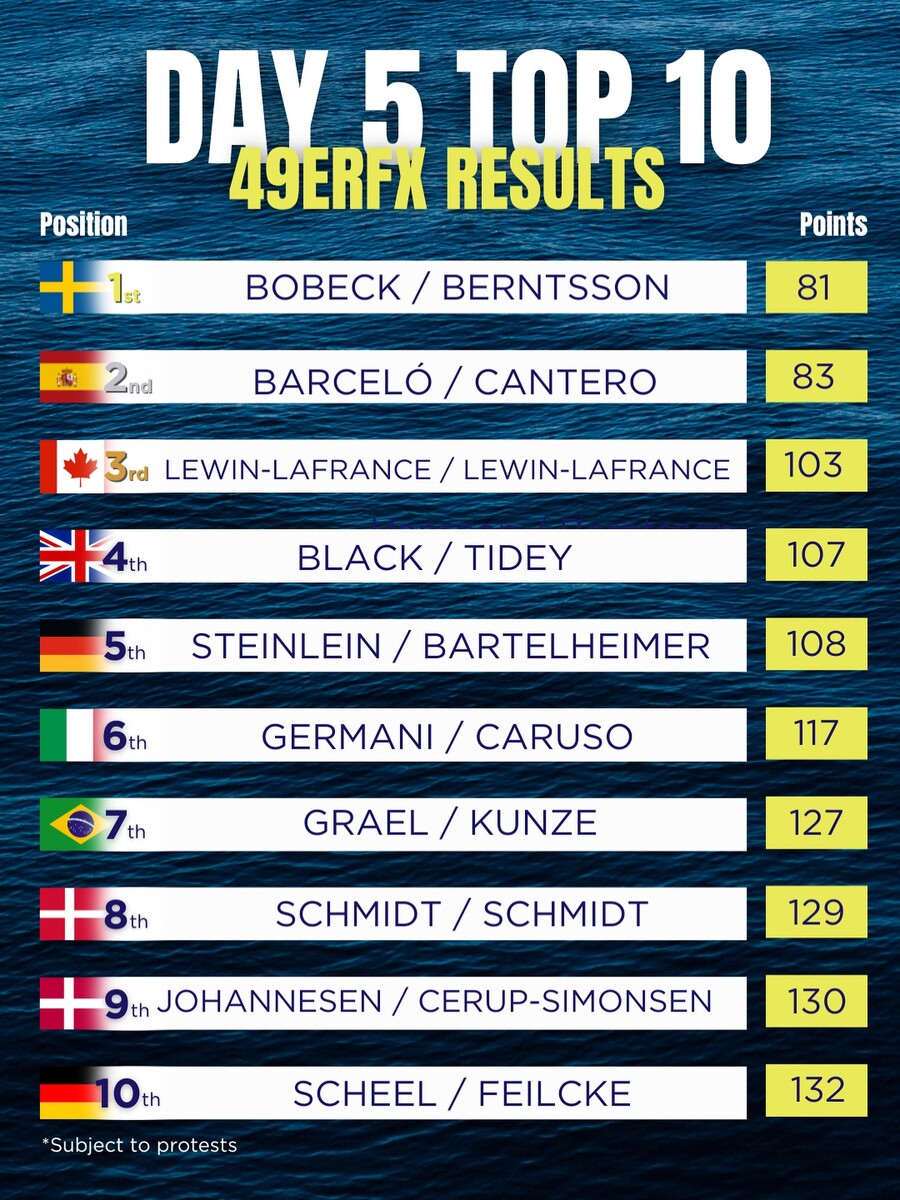 Ida Svensson/Marcus Dackhammar (Nacra 17) ligger kvar på åttondeplats.