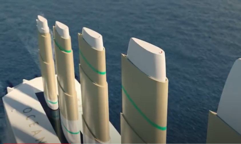 Wallenius Marine har tagit fram designen tillsammans med KTH och SSPA med stöd från Trafikverket. Fartyget drivs med hjälp av enorma vindkrafts-konstruktioner som gör att fartyget får en höjd på hela 100 meter. "Seglen" är dock en slags teleskopshistoria som synes i klippet nedan och går att sänka så att totalhöjden över vattenytan bara blir 50 meter.