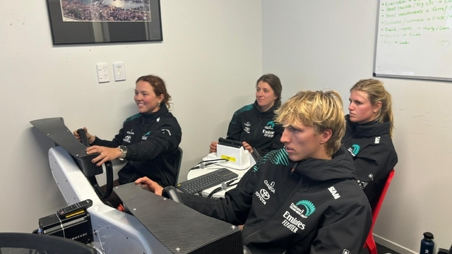 Team Australien i sin simulator. Foto: America's Cup
