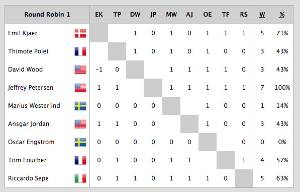 Nio lag står på startlinjen varav sex utländska. Efter första dagen leder amerikanen Jeffrey Petersen som har med sig Max Brennan och Scott Mais i båten. På andra plats ligger danskarna Emil Kjaer, Mads Poder Witzke och Bastian Baech Sorensen. Svenskarna mötte stort motstånd men Marius med besättning fick i alla fall med sig en vinst från första omgången. Nu önskar vi dem båda lycka till resten av regattan!