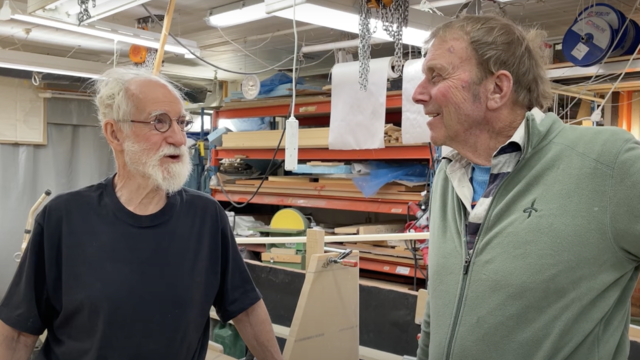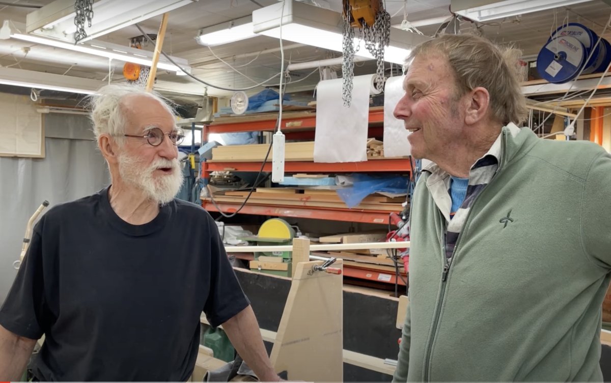 Det är många detaljer att tänka på när man bygger en ny båt och för Yrvind, som bygger en så pass liten båt, är det såklart viktigt att varenda cm² är välplanerade. Verkstadsdörren där Yrvind arbetar står alltid öppen och för några dagar sedan kom båtbyggaren Göran Marström, som inte bor långt därifrån, förbi.