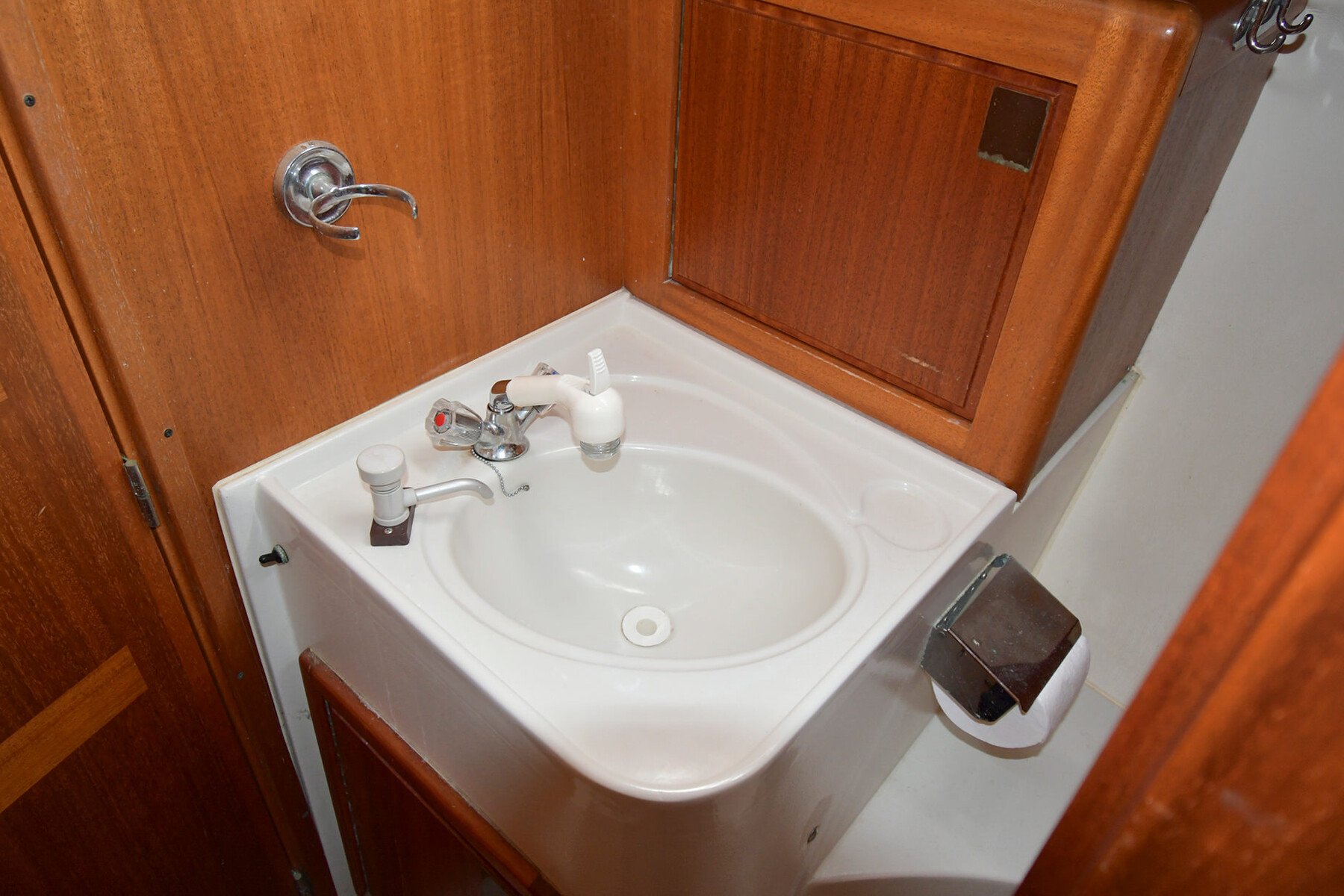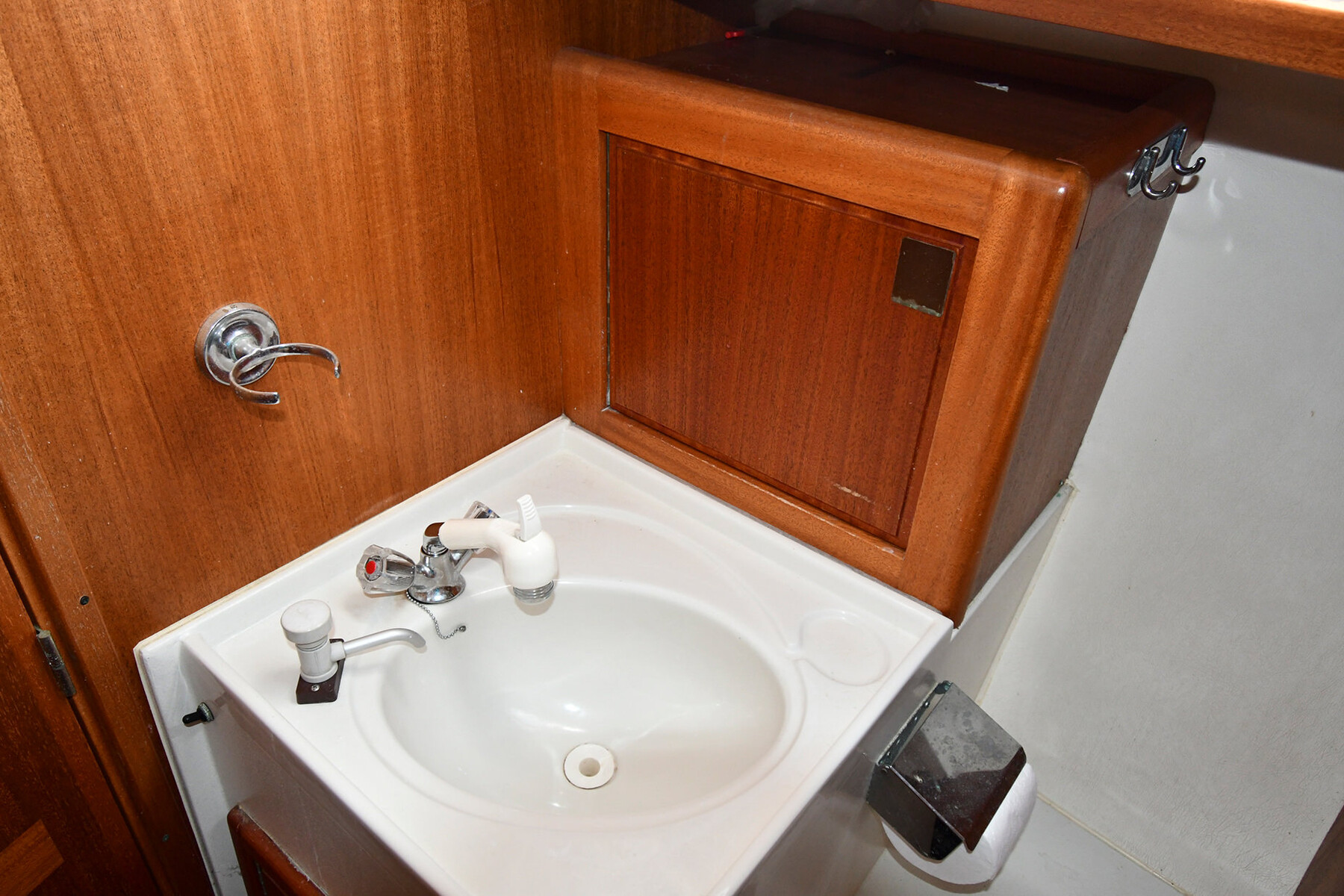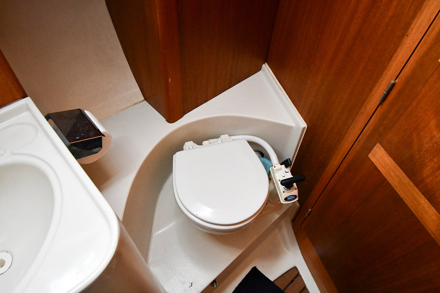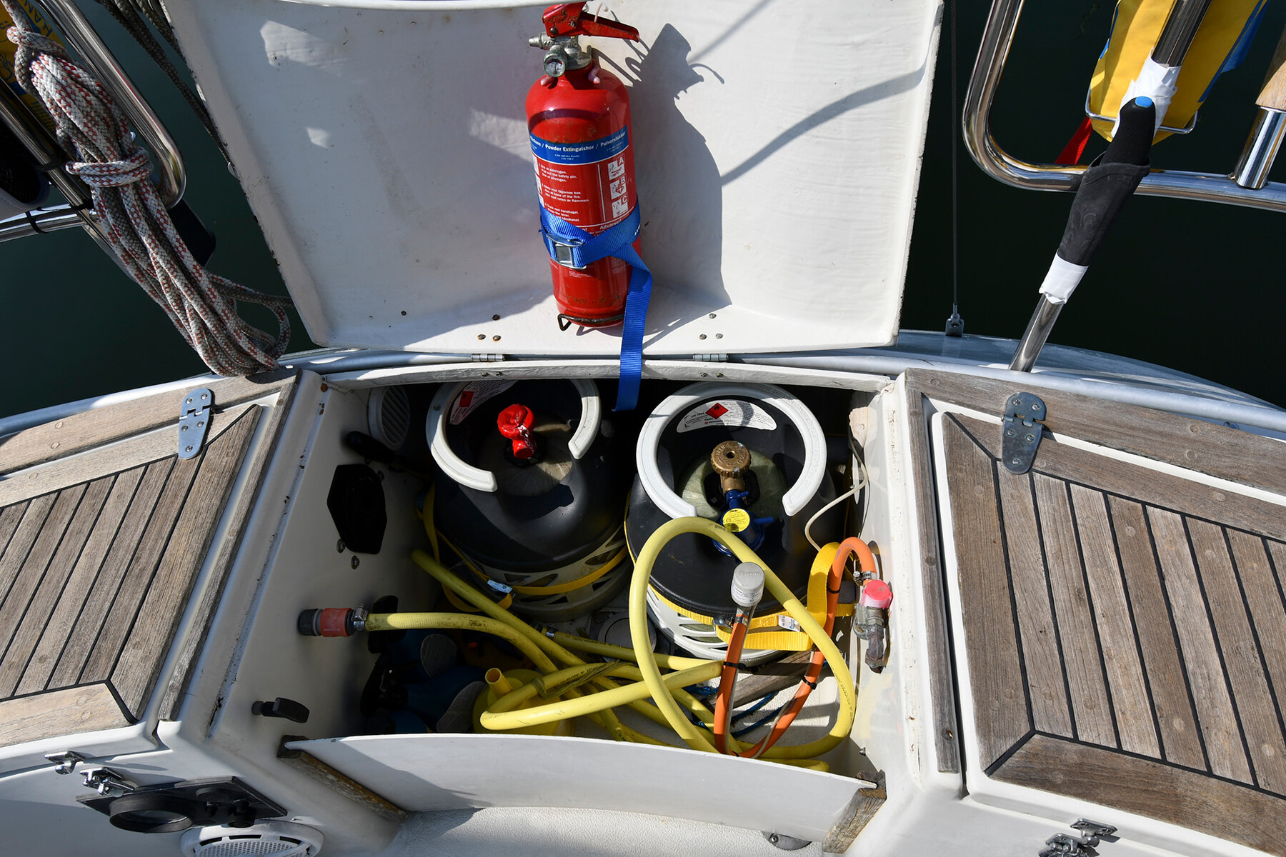 I fören finns en dubbelsäng med stora förvaringsutrymmen, och längst akterut hittar du den klassiska ägarhytten. Ingången är placerad om babord och härifrån har du direkt tillgång till toaletten på styrbordssidan. Hytten är utrustad med stora garderober på båda sidor, vilket gör båten utmärkt även för längre seglingar.
