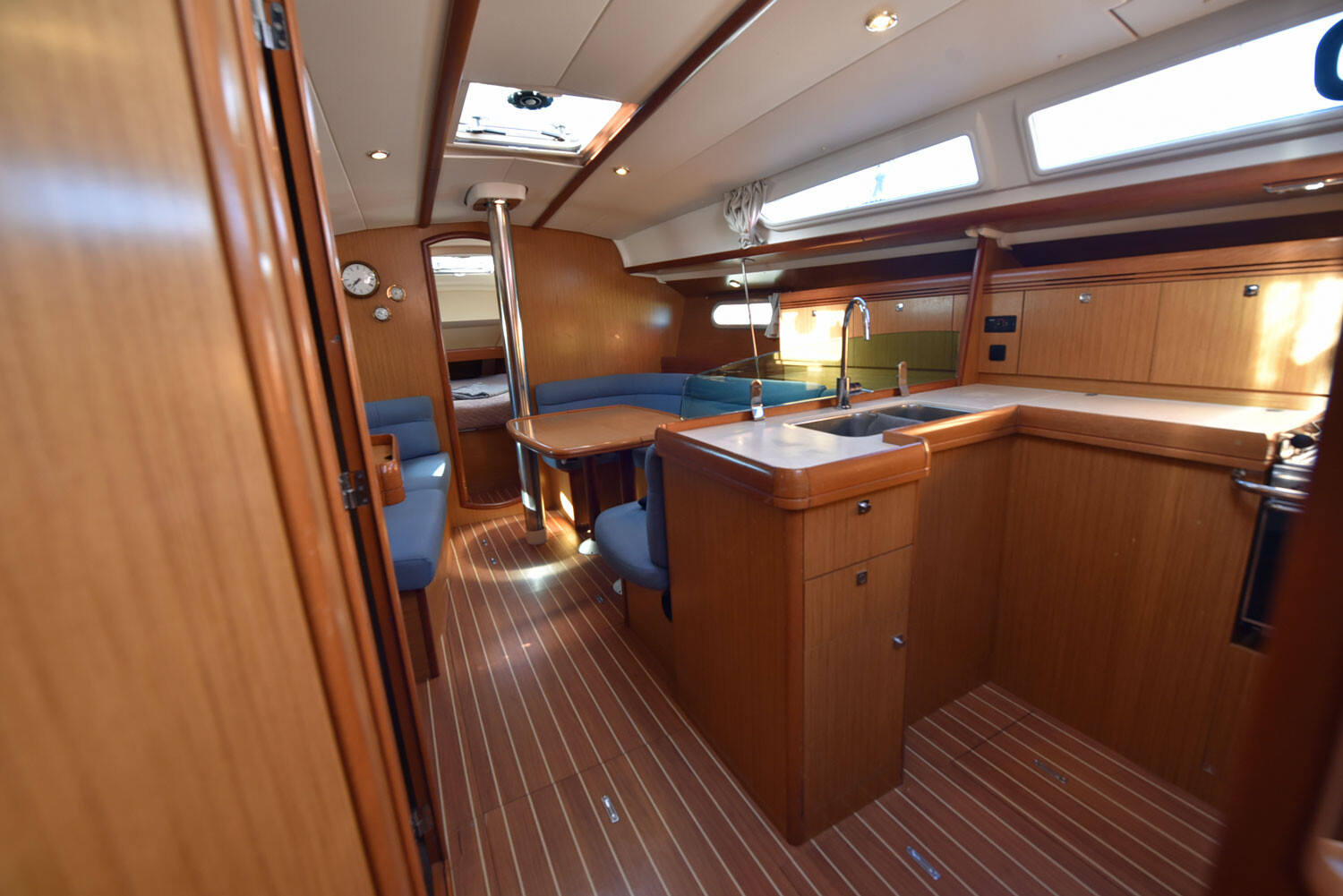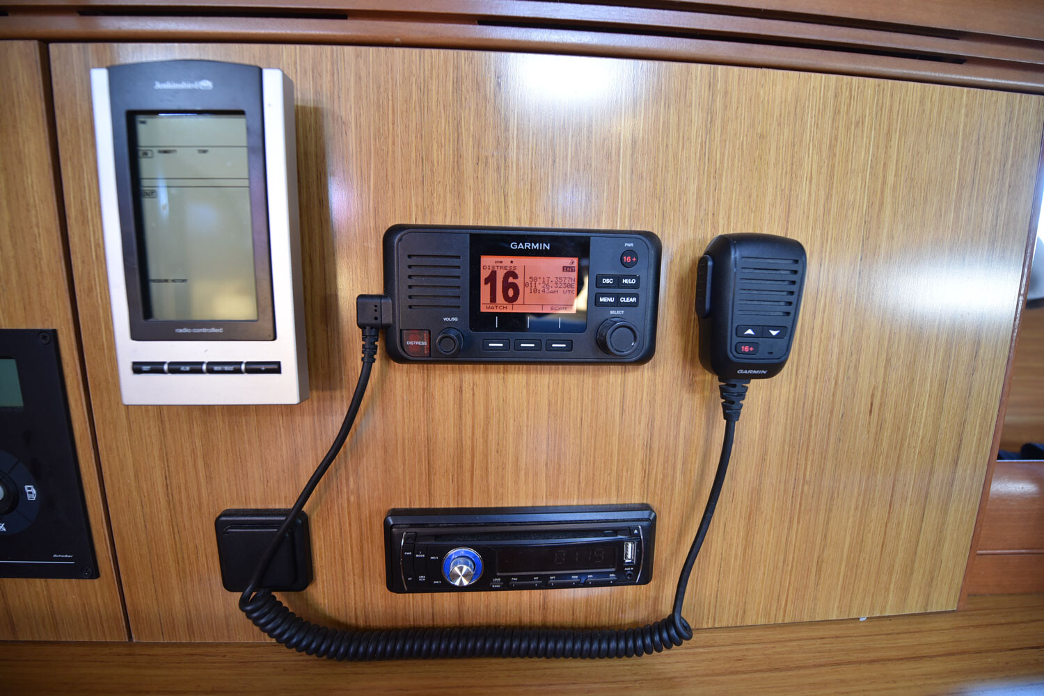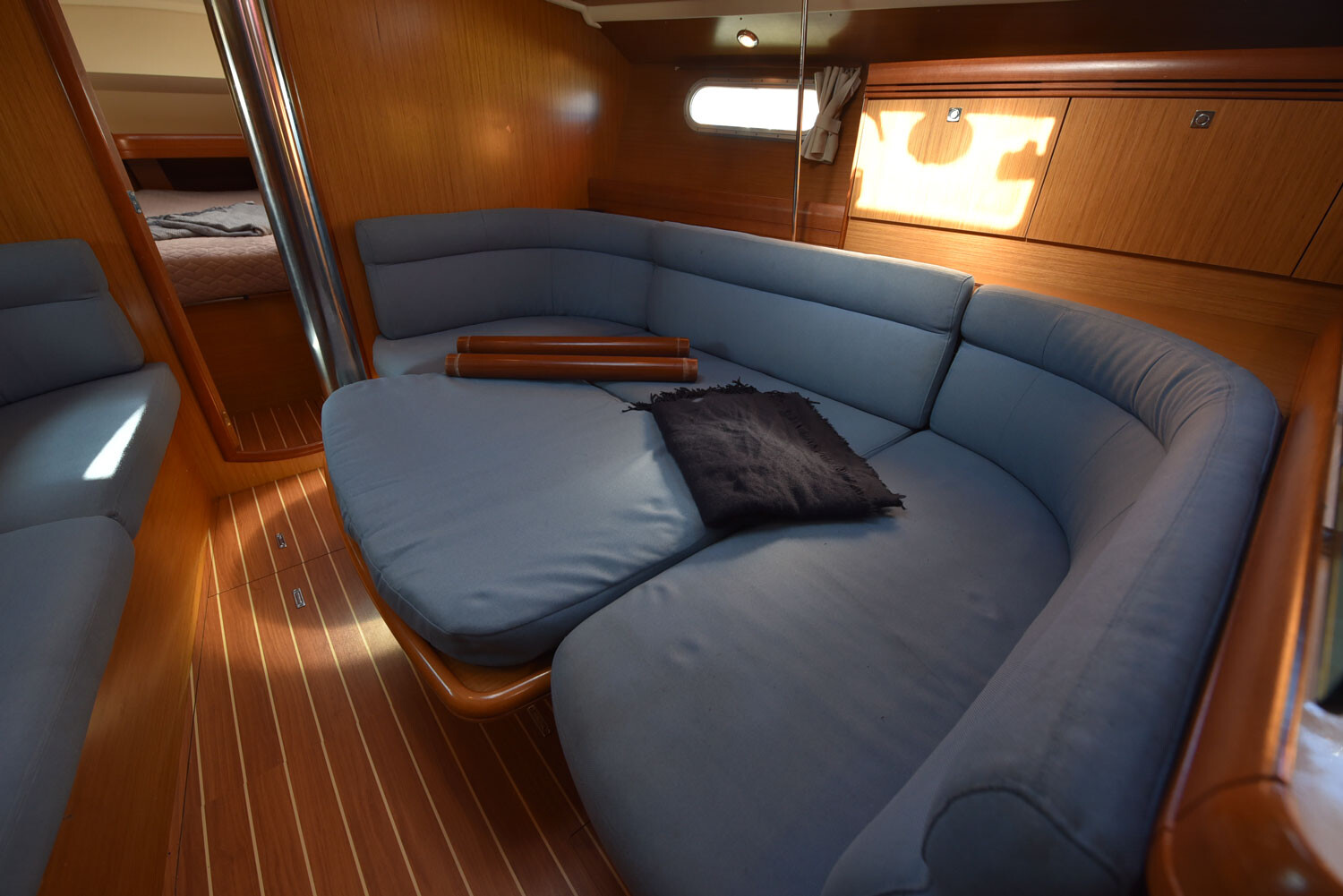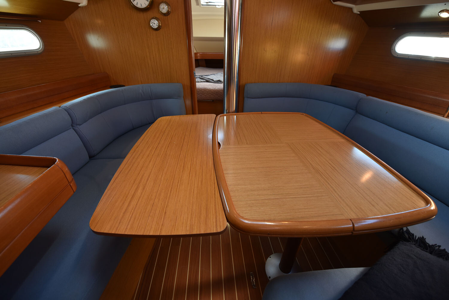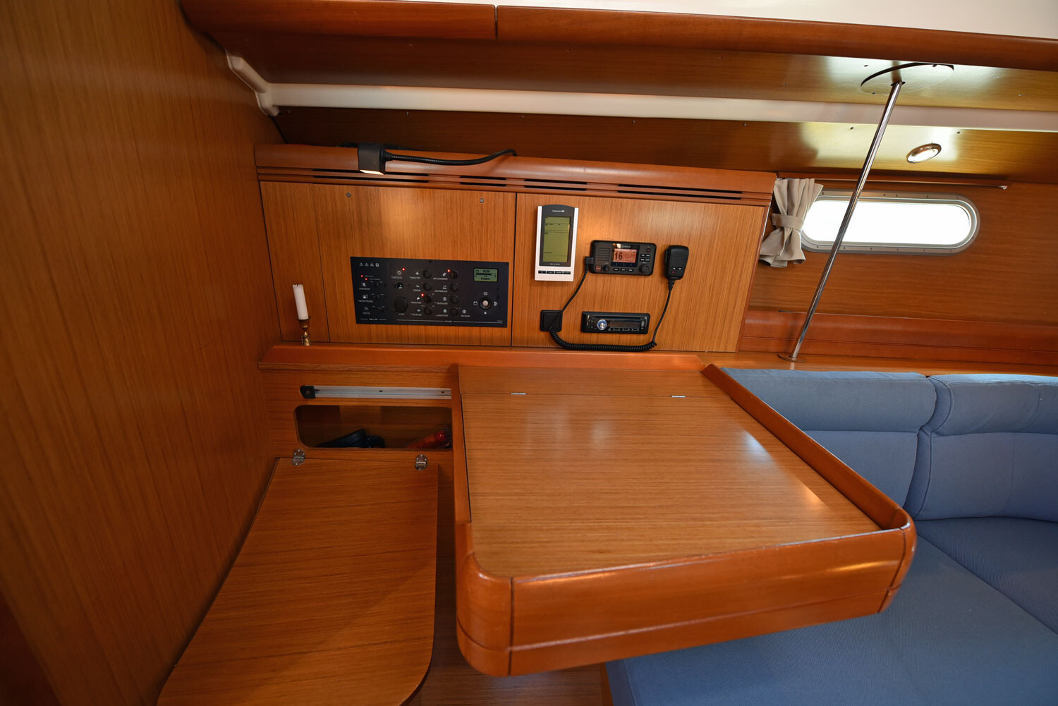 Dubbla elektriska ankarspel, dubbla rattar, samt autopilot och trivsam sittbrunn med ett rejält sittbrunnsbord gör båten trivsam både till sjöss och i hamn.